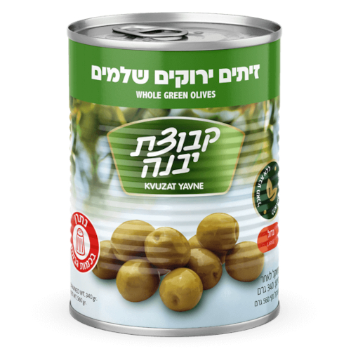 • קבוצת יבנה זיתים ירוקים שלמים 560 גרם