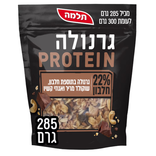 כמות תלמה גרנולה בתוספת חלבון שוקולד מריר ואגוזי קשיו 285 גרם